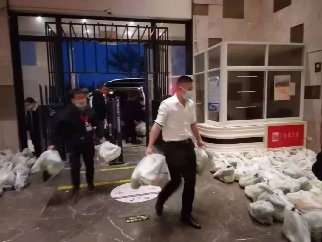 但爱与关怀总是相互的,物业人的坚守,同样被业主看在眼里,经常有同事上门送物资时,被业主给“留”下来。