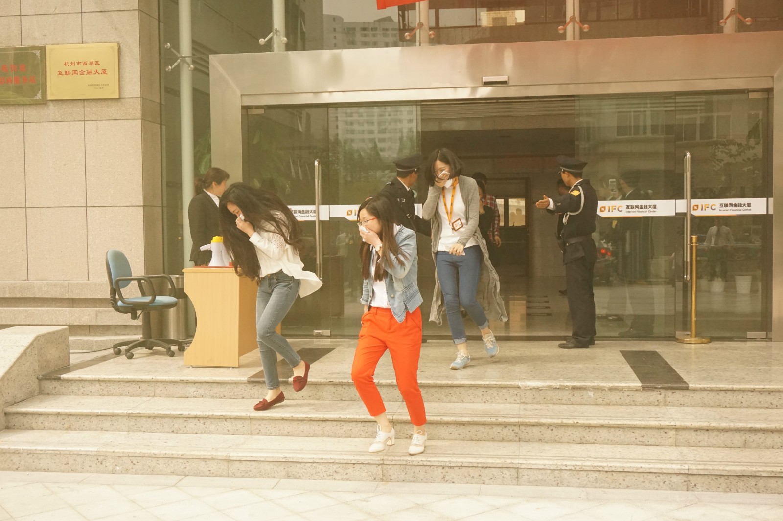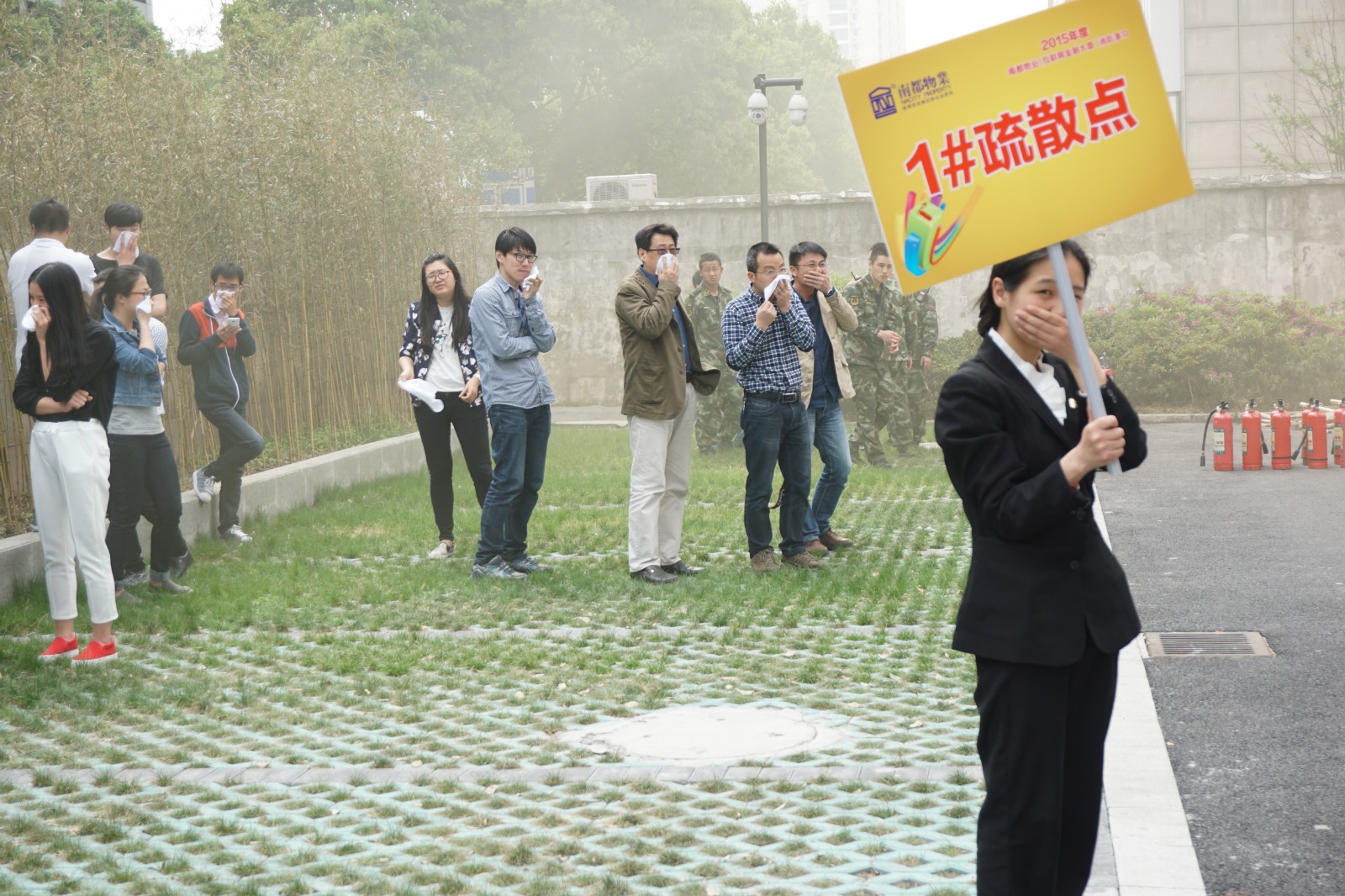 11月18日活动当天,随着急促的火灾警笛声拉响,联合大厦写字楼的业主在物业服务人员的安排下迅速、有序地撤离办公室。物业工作人员以最快的速度有序地指挥业主按照疏散路线迅速逃离到联合大厦指定的位置集合。仅一分钟时间,全体业主已在联合大厦集合完毕。